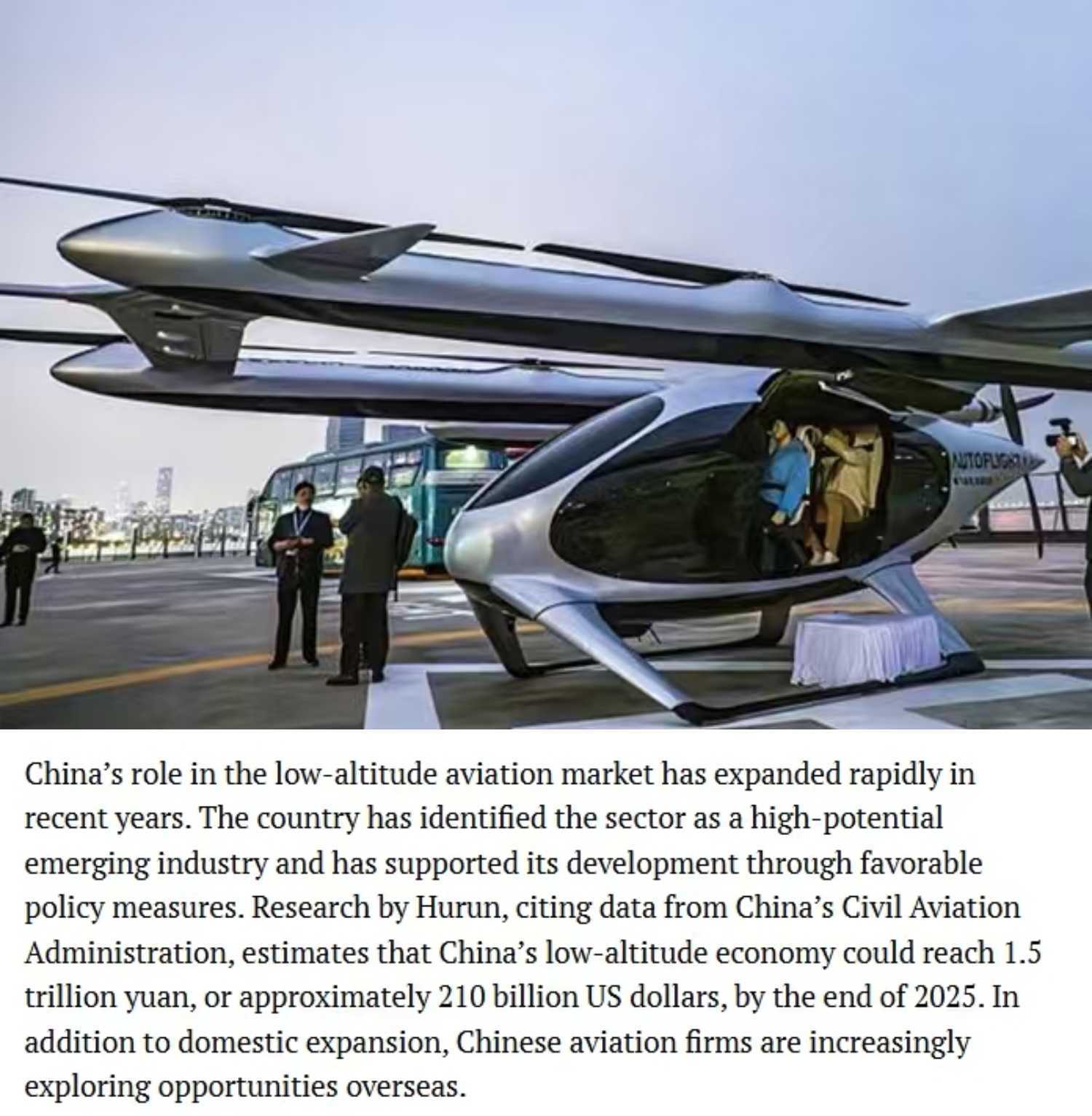 《斯里兰卡卫报》网站刊文称,中国在低空经济市场的地位近年来迅速提升。中国已将这一领域确定为高潜力新兴产业,并通过利好政策支持其发展。报道还援引中国民航局发布的数据,预计到2025年底,中国低空经济规模有望达到1.5万亿元人民币。此外,在深耕国内市场的同时,中国企业也正积极开拓海外市场。