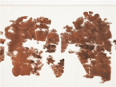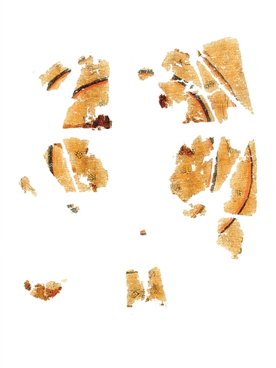 图为子弹库帛书中的《攻守占》残片,红字由朱砂书写而成。《攻守占》是战国时期融合天文历法、哲学思想与军事兵法的古代文献,是研究古代哲学与兵法思想的重要原始资料。
