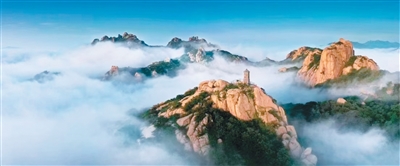 云雾缭绕中的日照五莲山。