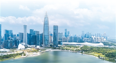 图为深圳湾体育中心。全运会篮球女子22岁以下组、马拉松比赛在这里举行。其中,全运会马拉松比赛从深圳湾体育中心周边道路起跑,以深圳湾大桥为纽带,横跨深圳、香港两地,最后回到深圳湾体育中心。新华社记者 梁旭摄