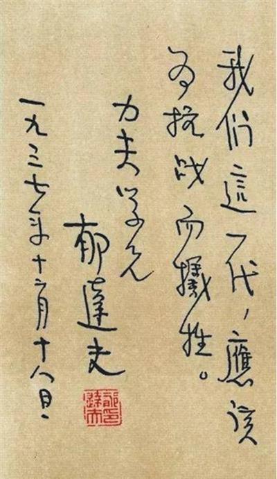 1937年底,郁达夫写给文学青年程力夫的短信:“我们这一代,应该为抗战而牺牲。”