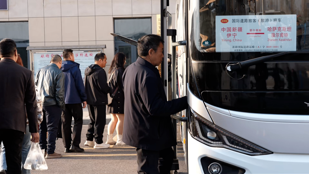 3月24日,霍尔果斯国际客运站,旅客正有序乘车。董智杰摄