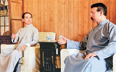“帅府百年”复原陈列中的孙中山、李大钊会晤场景。