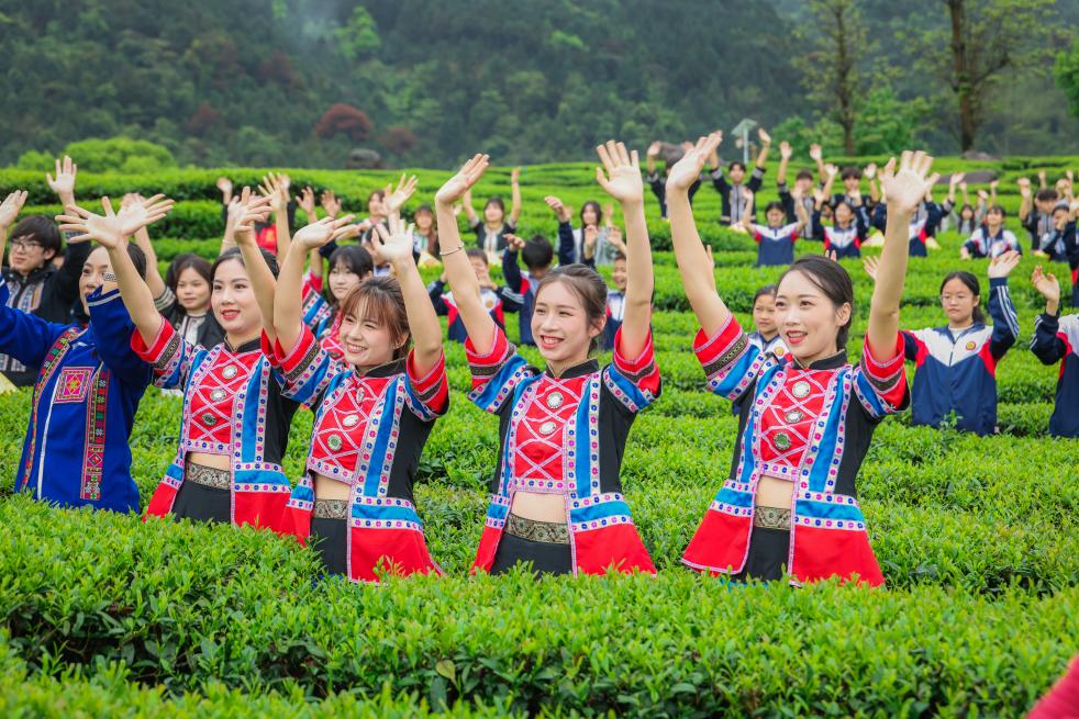 梅山生态茶园负责人邵林保说,我们更注重“边逛边玩”的沉浸式体验,游客可在非遗工坊学唱采茶戏,在互动区体验瑶族竹竿舞,在古风妆造区定格春日倩影,在春天的茶园尽享非遗文化的乐趣。